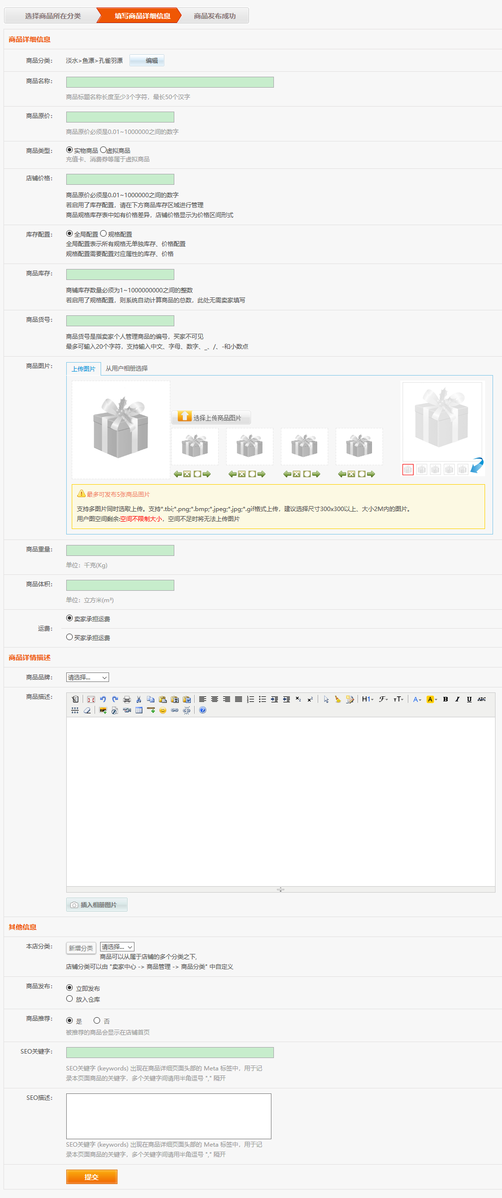 3.填写商品详细信息并提交