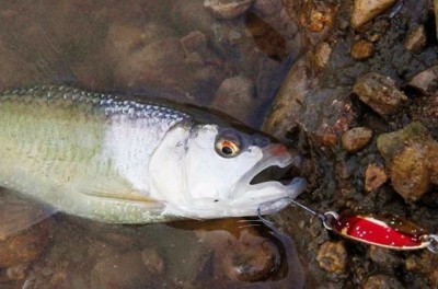 而且要重点注意水域的深浅交界处,缓急的交界处,我们在亮片经过这种地方的时候,应该多抖动几下,来刺激马口鱼前来捕食。而且,水域的深度不一样,我们要选择的亮片类型也不一样。