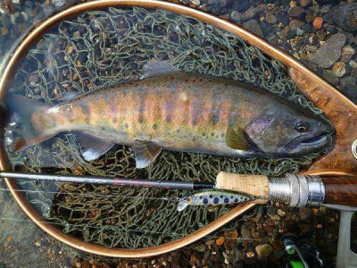 如果是在流速缓慢地缓流区,我们又应该怎样来作钓呢?我认为还是应该和上面一样,是慢收,停顿以及小的抖动。在缓流区,马口鱼在不捕食的时候大多都是栖息在水域的底层,我们的亮片就要慢一点,并且沉的要深一点。