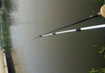 灌溉渠给水时可以钓流,也叫蹦尖都是鲤鱼,停水时有鲫鱼