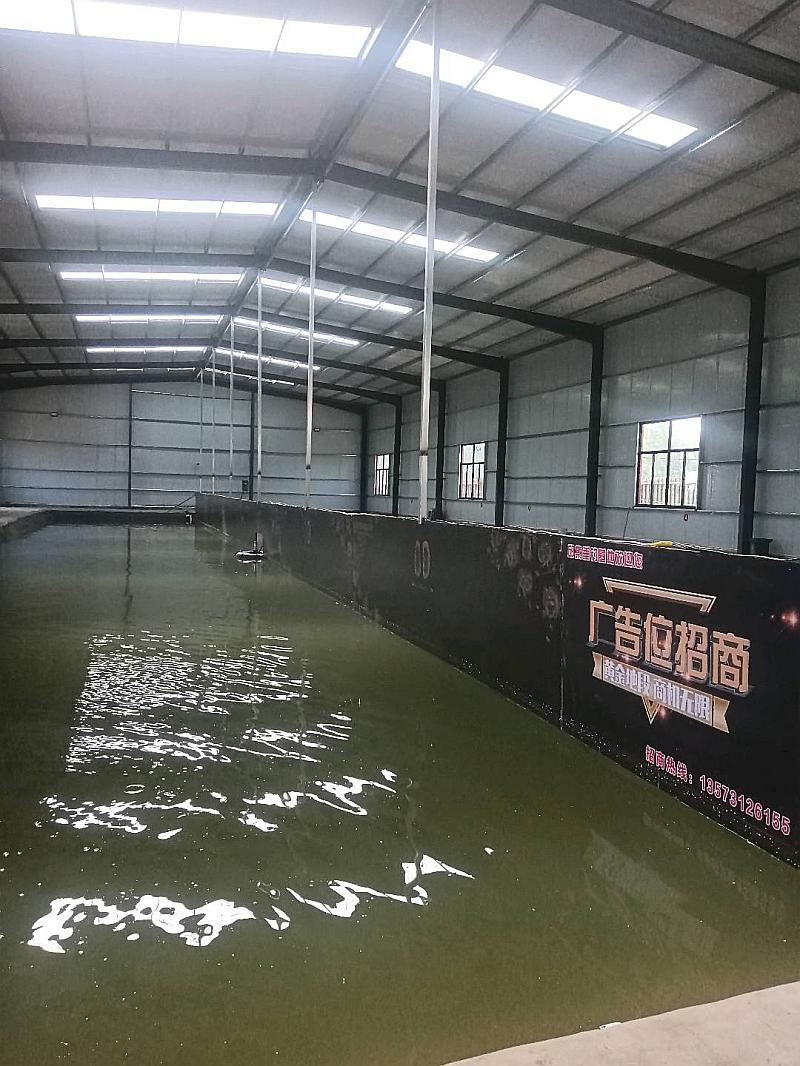 鱼池长73米,宽25米,水深2.5米左右,活水池